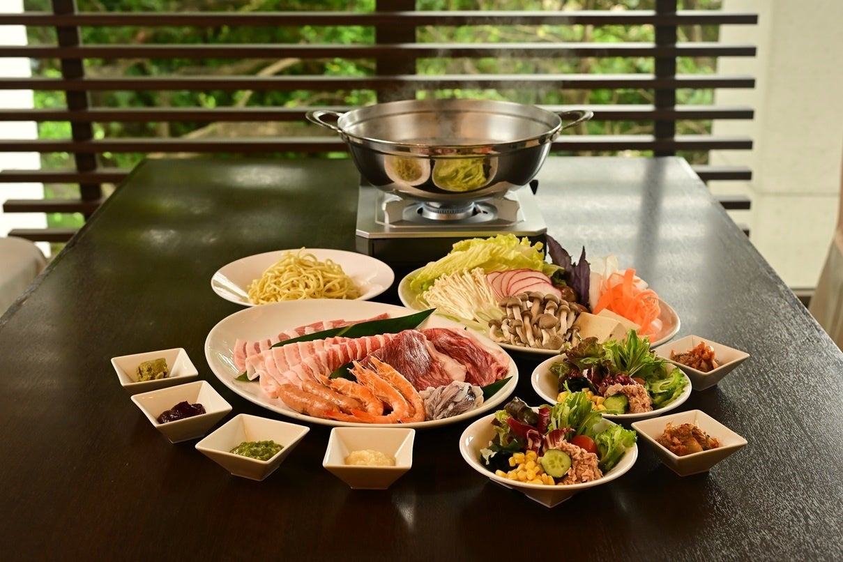雨天・強風など、悪天候での影響でバーベキューテラスが利用不可と判断された場合は、ホテル館内のレストランにて、特別メニュー(県産豚しゃぶしゃぶと旬野菜)をご用意いたします。
