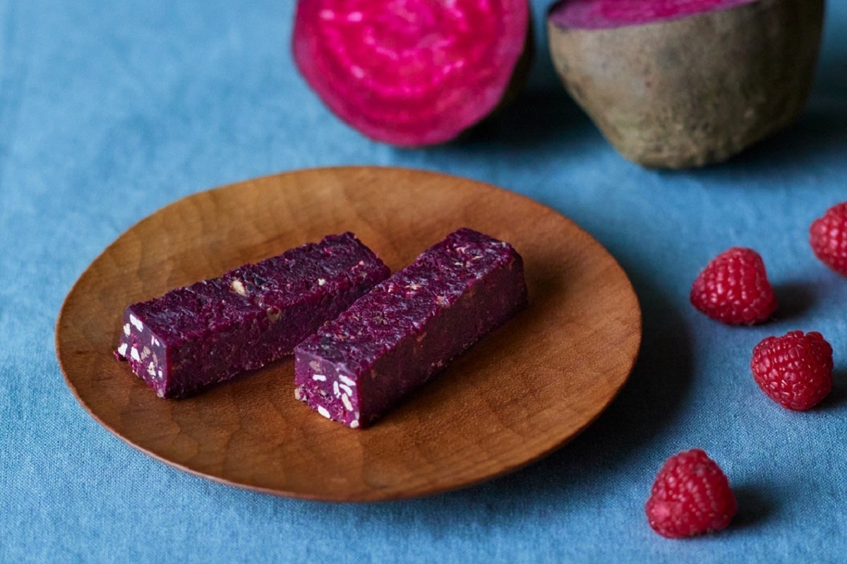 スーパーフード・ビーツのやさしい甘みに、甘酸っぱいラズベリーが好相性。カカオニブを練り込み、フルーティーなチョコレートのような濃密な味わいに仕上げています。