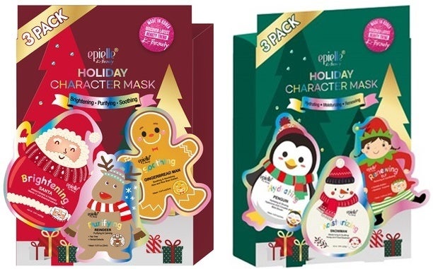 可愛いパッケージには3種類のユニークな顔がプリントされたフェイスマスクが入っています。