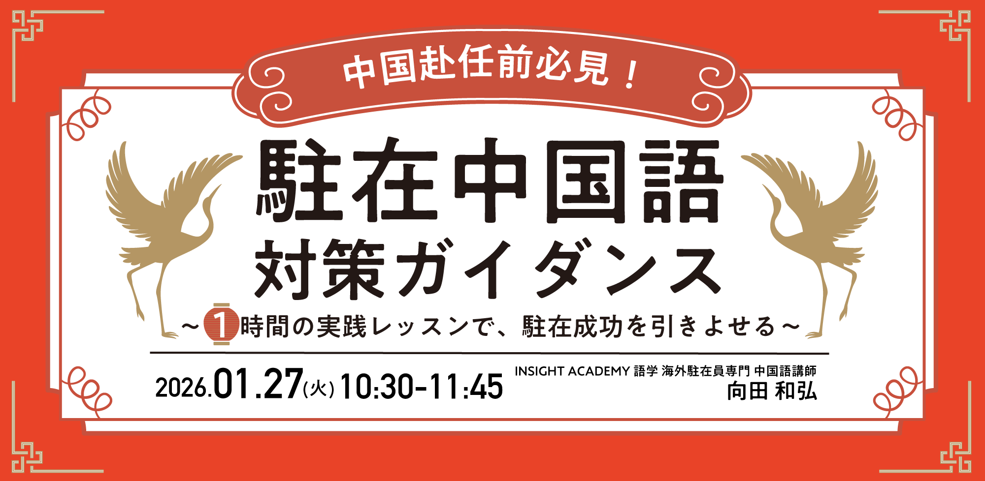 【中国赴任前の不安を解消!】”駐在中国語” 対策ガイダンス~1時間の実践レッスンで、駐在成功を引きよせる~|Webセミナー1/27(火)10:30開催