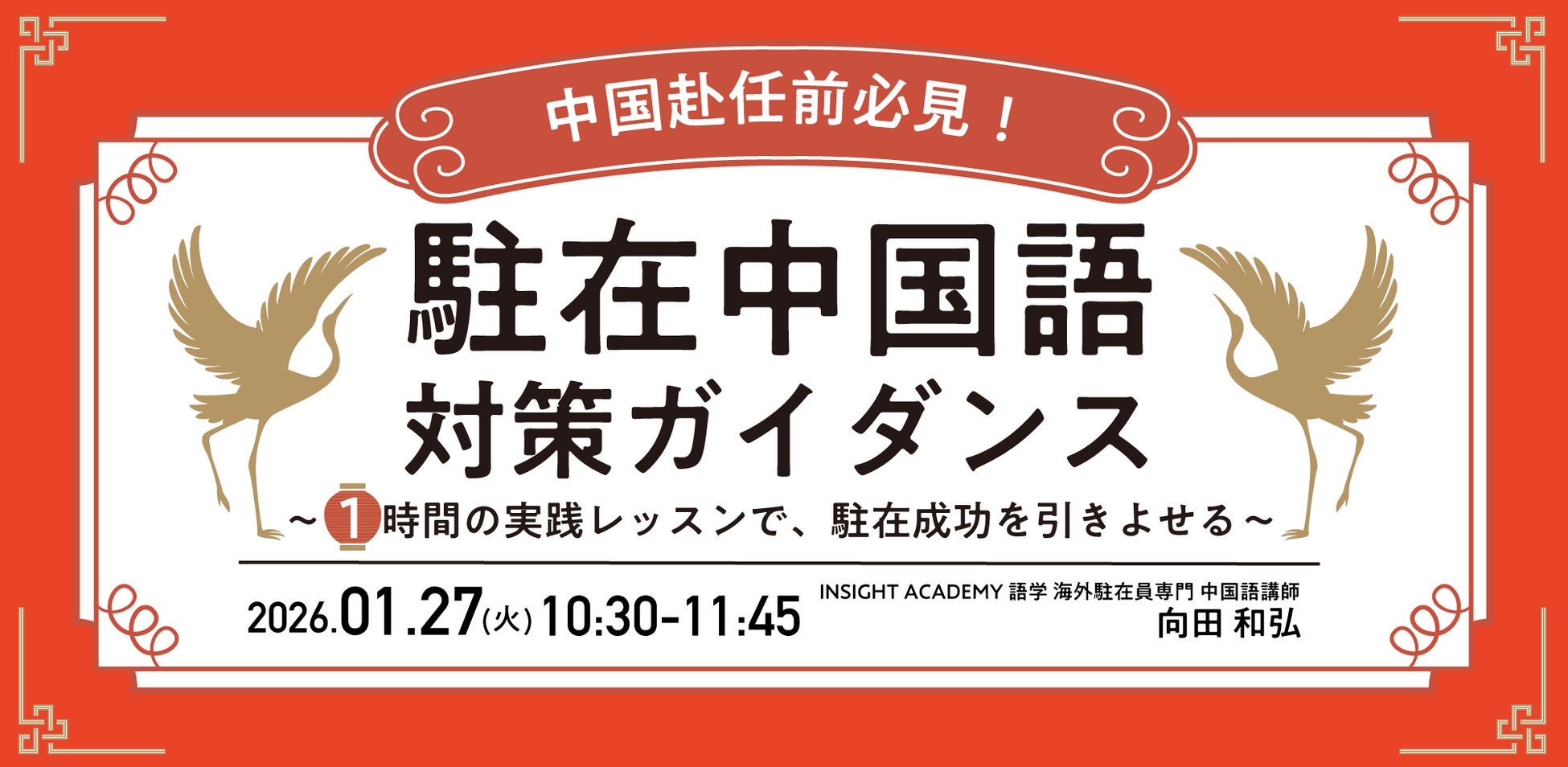 グローバル⼈材育成・研修業を⼿掛けるインサイトアカデミー株式会社(本社:東京都港区新橋、代表:金 珍燮)は、無料webセミナー「【中国赴任前必見!】”駐在中国語” 対策ガイダンス~1時間の実践レッスンで、駐在成功を引きよせる~」を開催致します。