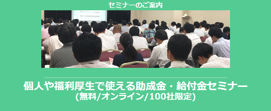 個人や福利厚生で使える助成金・給付金セミナー(無料/オンライン/100社限定)
