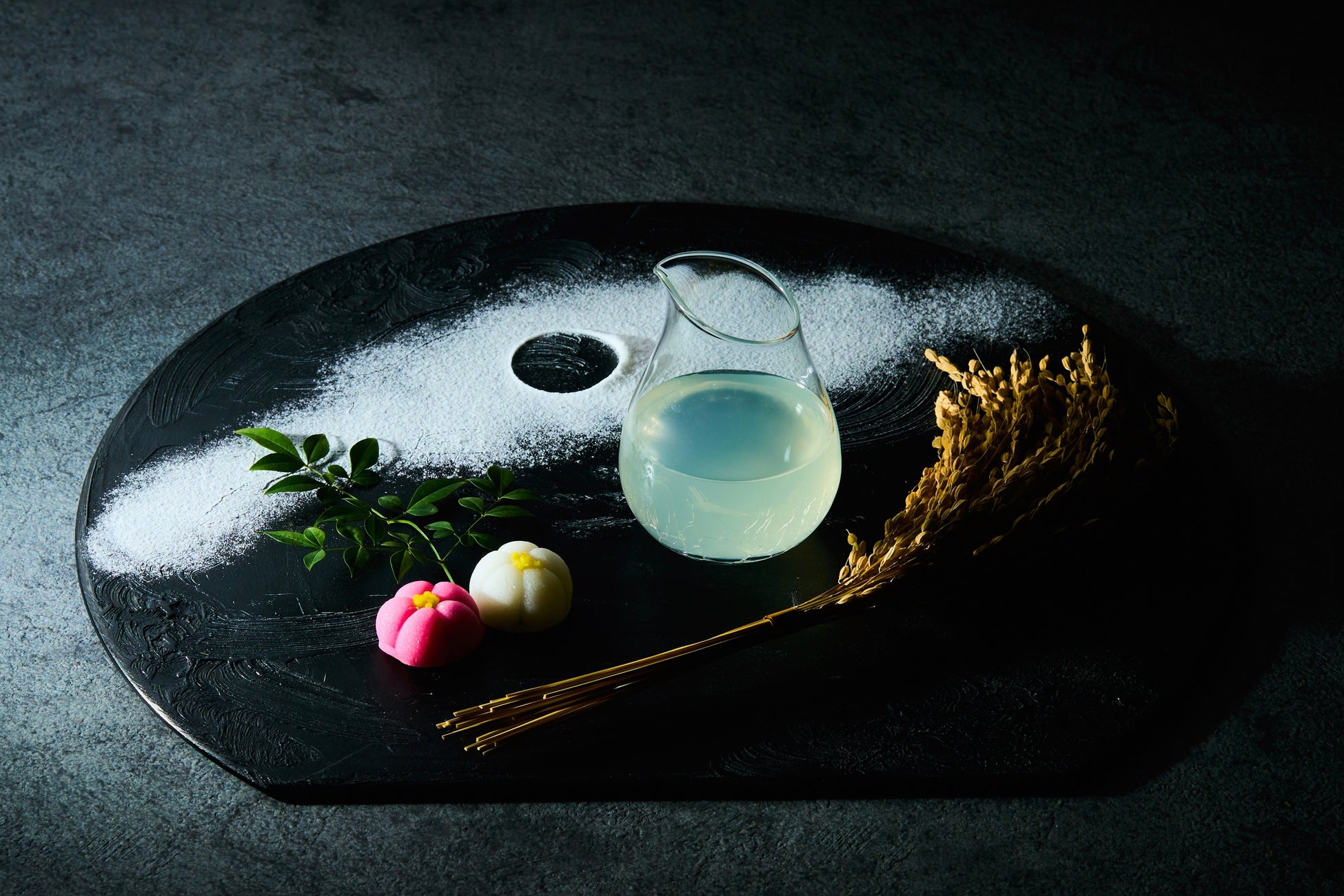 京都の日本酒に白みそのピュアな旨味をあわせた、1年の幕開けにふさわしい和のカクテル。ぶぶあられとともに口に含むと、まるでお雑煮のような味わいに変化するサプライズも。添えられた和菓子とのマリアージュにも注目です。