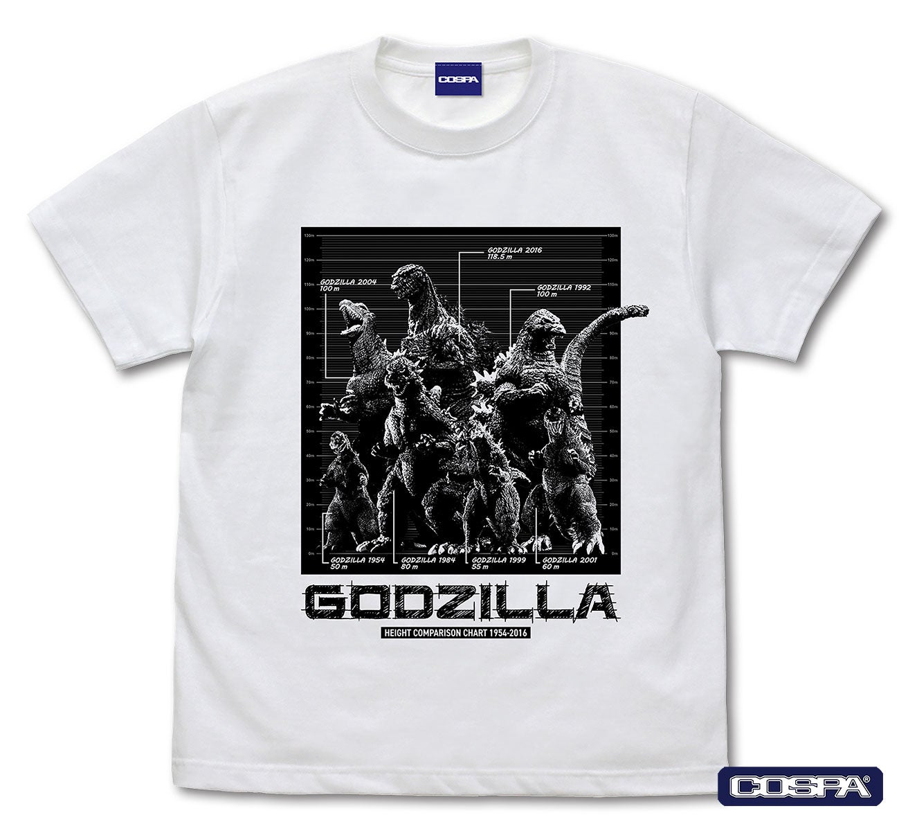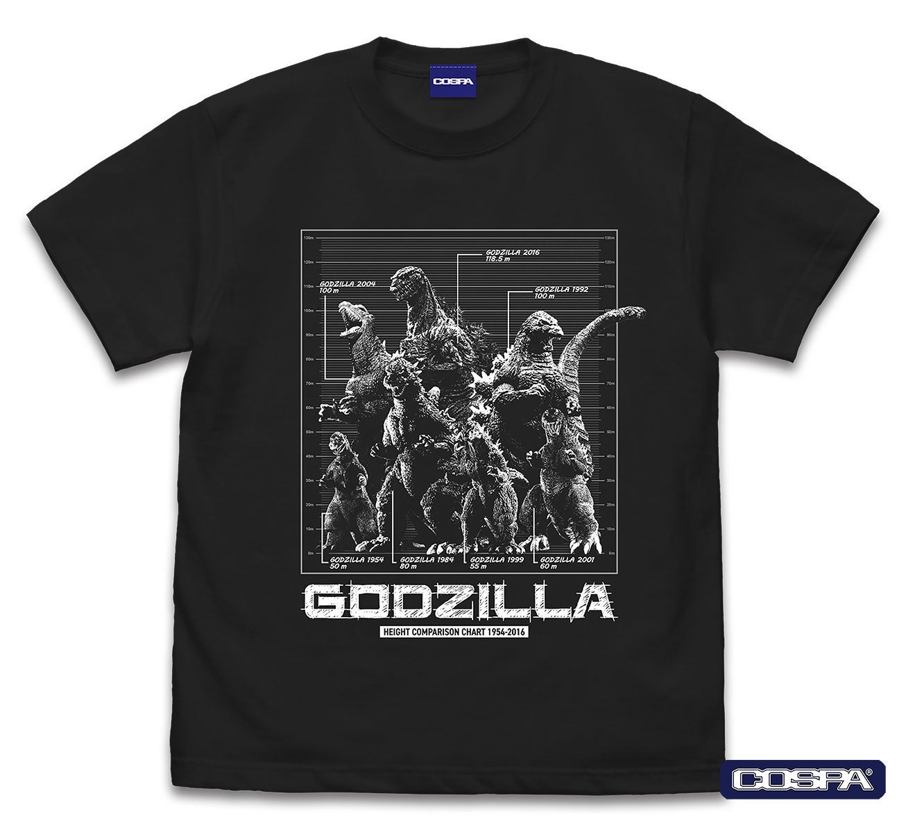 そして1954年から2016年まで、"歴代ゴジラ"の身長比較が「歴代ゴジラ身長比較表」となったTシャツ&トートバッグもラインナップ。