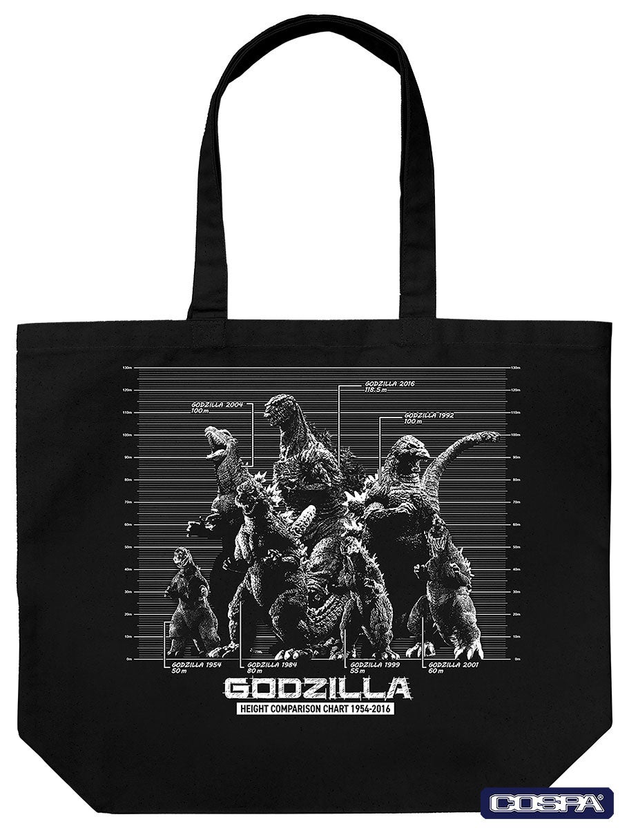 ◆インファント島/歴代ゴジラ身長比較表 ラージトート(各 税込1,980円)