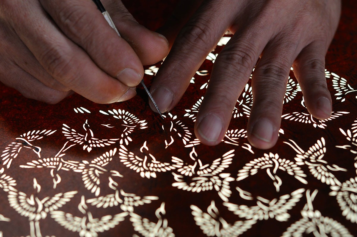 熟練の友禅彫刻士がロビーラウンジにて制作を実演します。友禅彫刻の詩情豊かな表情を、間近でじっくりとご覧ください。