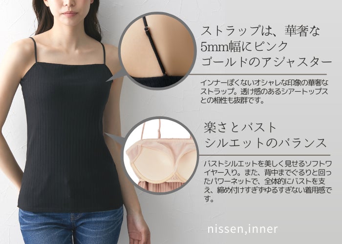 ニッセンインナーでは、「暑さ」「汗」「紫外線」という夏の3大お悩みを解消する下着類を多数展開していますが、特に人気があるのは、ブラジャー着用による締め付けや暑さなどの不快感が解消できるブラトップです。