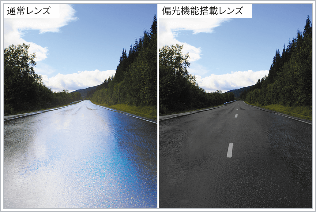 目に入る路面や水面などの反射光を抑制して、まぶしさをカットし、目の負担の軽減にもつながります。