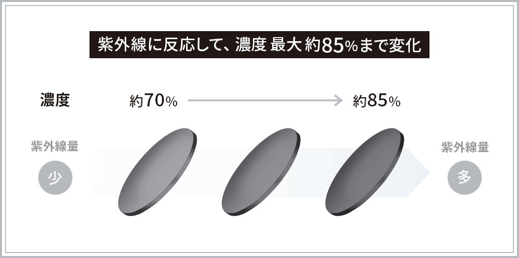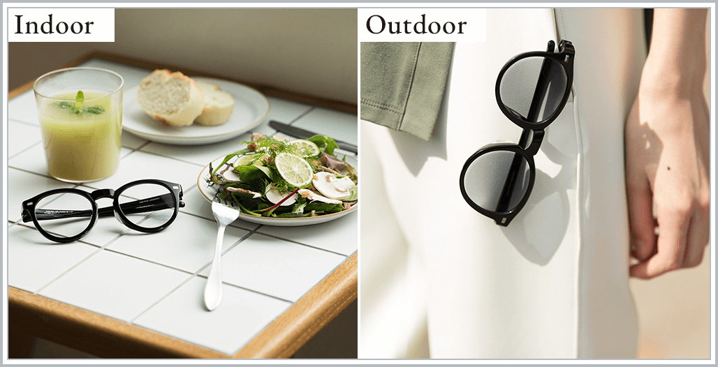 紫外線量によってレンズの色の濃度が変化するので、室内ではメガネとして、屋外ではサングラスとして1本で2通りの使い方ができます。レジャーシーズンやアクティブなシーンにも最適です。