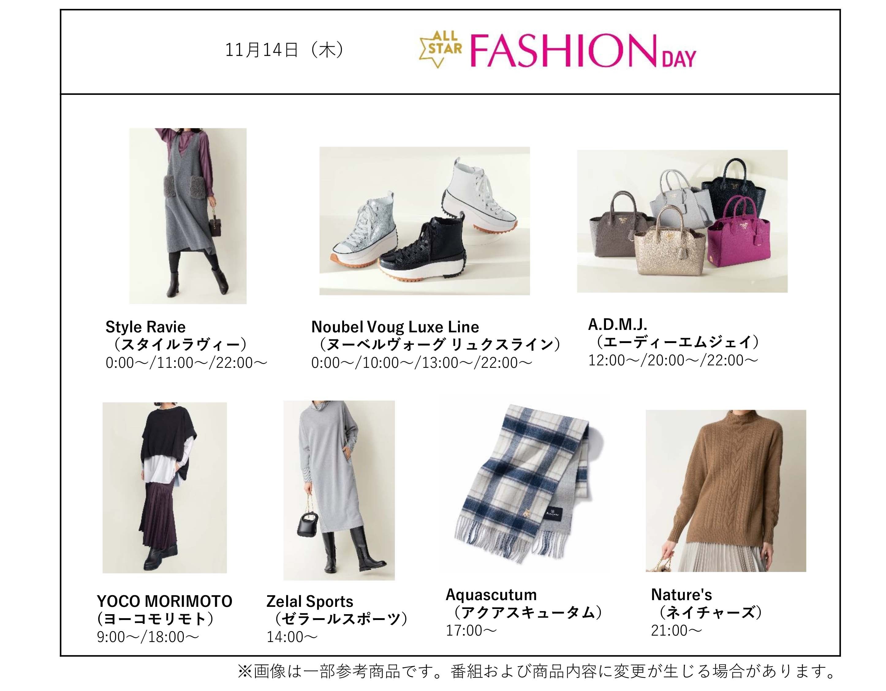 ショップチャンネル 11月14日(木)は「オールスターファッションデイ」、11月15日(金)は「オールスターホームデイ」を放送