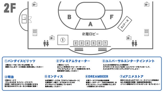 その他にも、「えとたま」新作ぱちんこキャラクターパネルの展示(提供:ユニバーサルエンタテインメント)や、家庭用ビールサーバー「DREAM BEER」を展示。「臨時ファミリーマート」では、人気のファミチキやジャンボフランクが販売されるほか、会場では「ウェルカカオ スパイシークリスプ」(提供:明治)や「ボディメンテ」(提供:大塚製薬)、天然水の試飲(提供:プレミアムウォーター)など、無料配布や試飲サービスも充実しています。