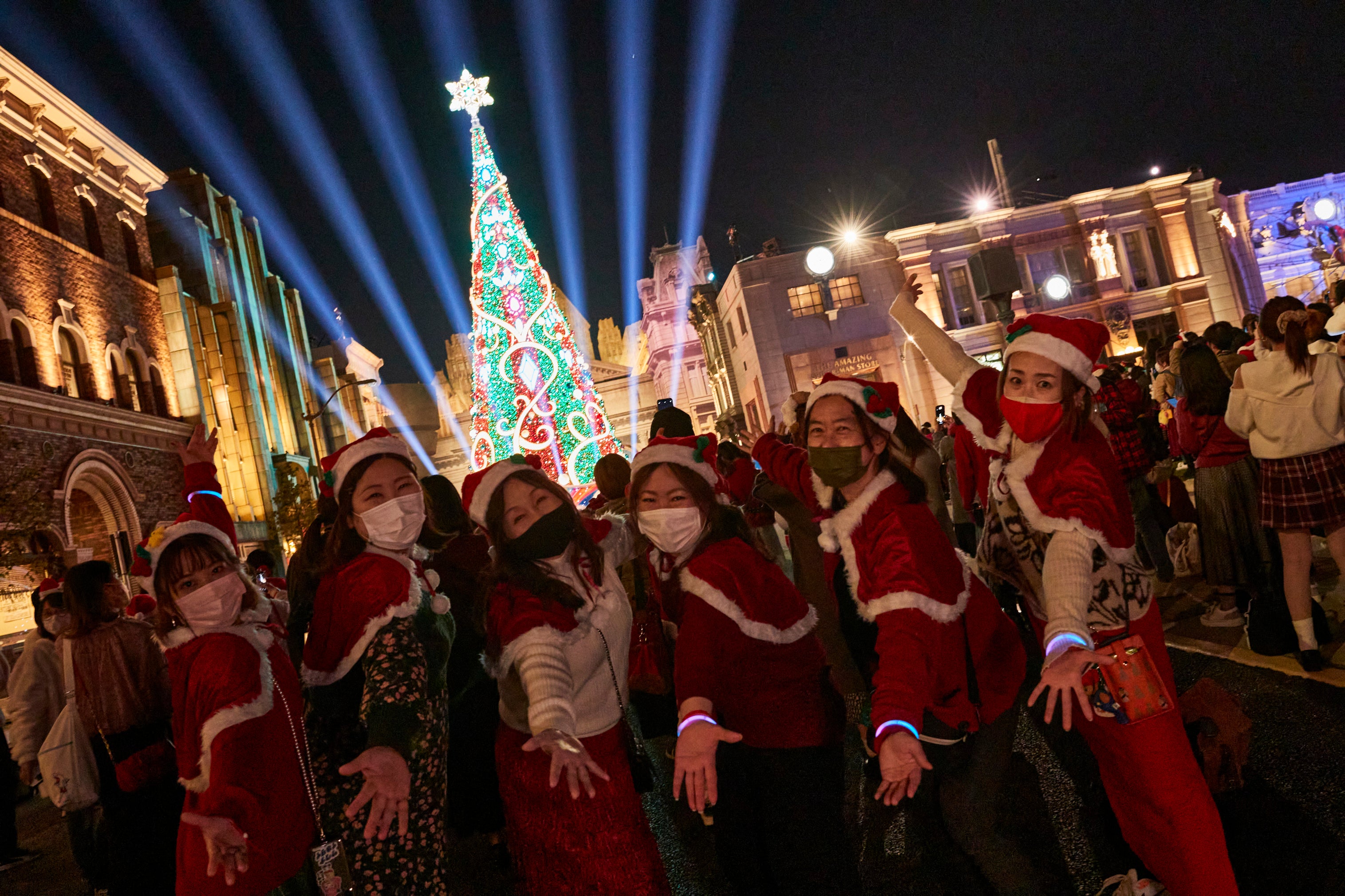 点灯の瞬間を目の当たりにしたゲストは、「3年ぶりのツリーは言葉にならないくらい感動して、トリハダが立ちました。赤いツリーがすごかったです。赤ってメッチャ元気でますね!」(30代女性2人組/兵庫県在住)、「とにかくきれいで、点灯した瞬間は“ツリーが戻ってきたなぁ!”と実感しました。赤はクリスマスカラーだけど、今までのツリーとはがらっと違いますね。クリスマスは、昼と夜でパークの雰囲気が変わるのもいいですね」(20代と10代の女性4人組/大阪府在住)、「3年ぶりに、このツリーを見ることができて大興奮です。元気をもらいました!ツリーの美しさが素晴らしくて、心にしみました。世界一おめでとうございます!」(30代女性3人組/大阪府在住)、「見たことのない演出がすばらしく、すごくよかったです。3年ぶりのツリーに超興奮でした!」(30代ご夫婦/兵庫県在住)と語りました。