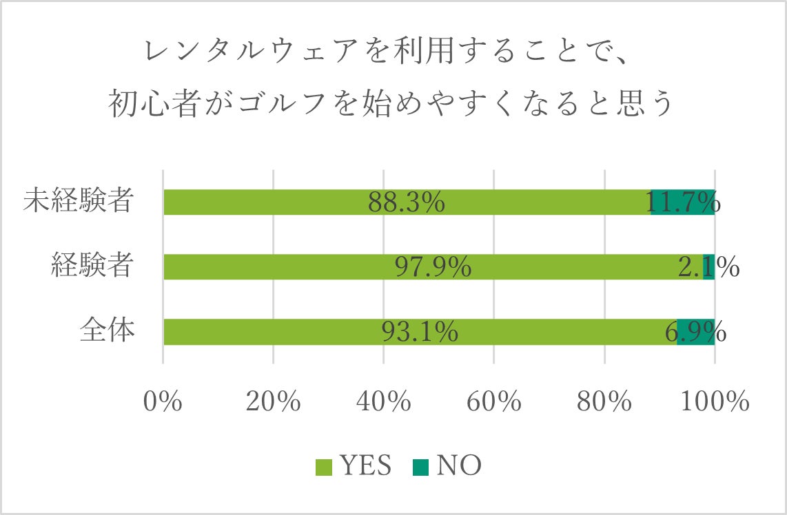また、初心者をラウンドデビューに誘う経験者側も「ゴルフウェアの準備の心配がなくなれば、初心者を誘いやすくなる」と答えた方が97.9%であり、誘う側のハードルの軽減にもなることが分かりました。