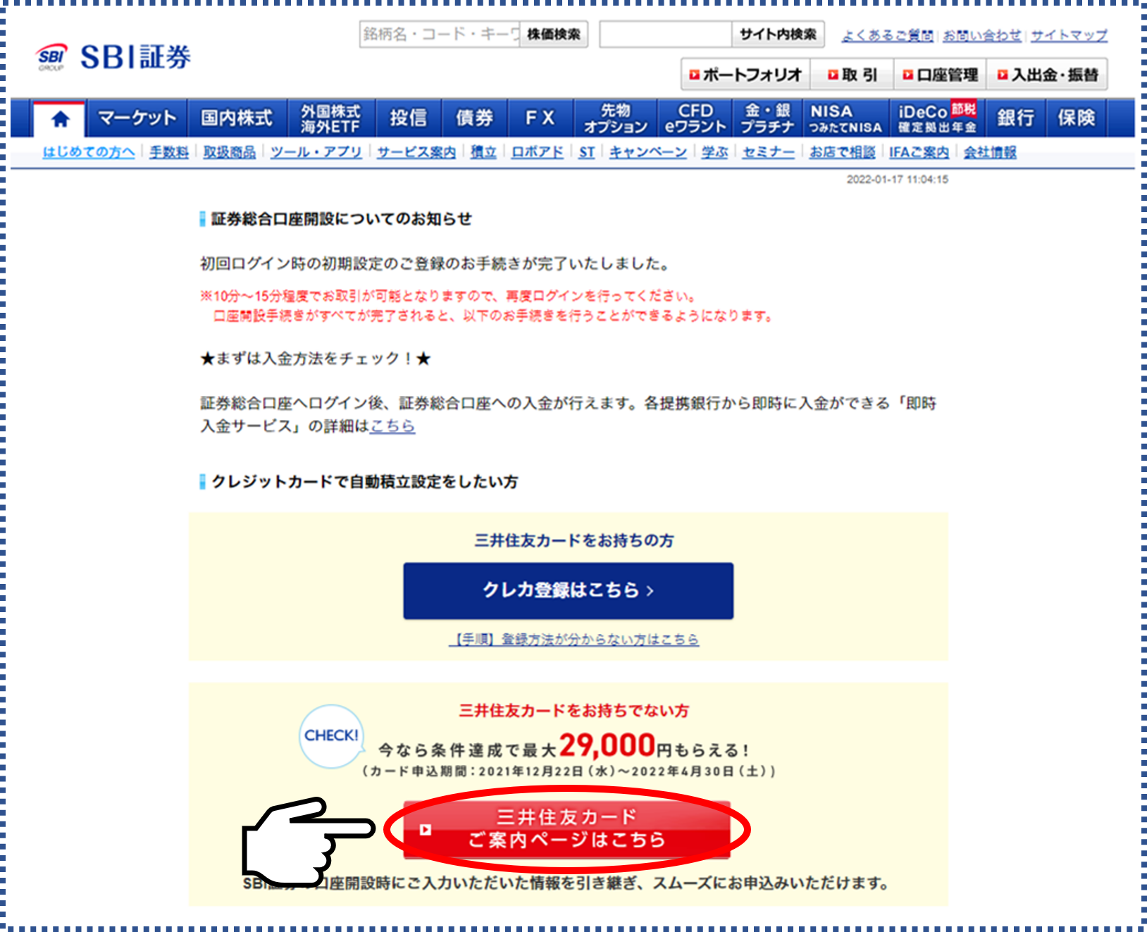 ■SBI証券口座の開設と、三井住友カード申込みが同時にできます!