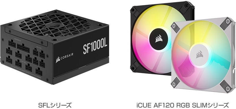 CORSAIR社製、SFX-Lフォームファクター準拠の電源ユニット「SFL」シリーズ、厚さ15mmの薄型アドレサブルRGBファン「iCUE AF120 RGB SLIM」シリーズを発表