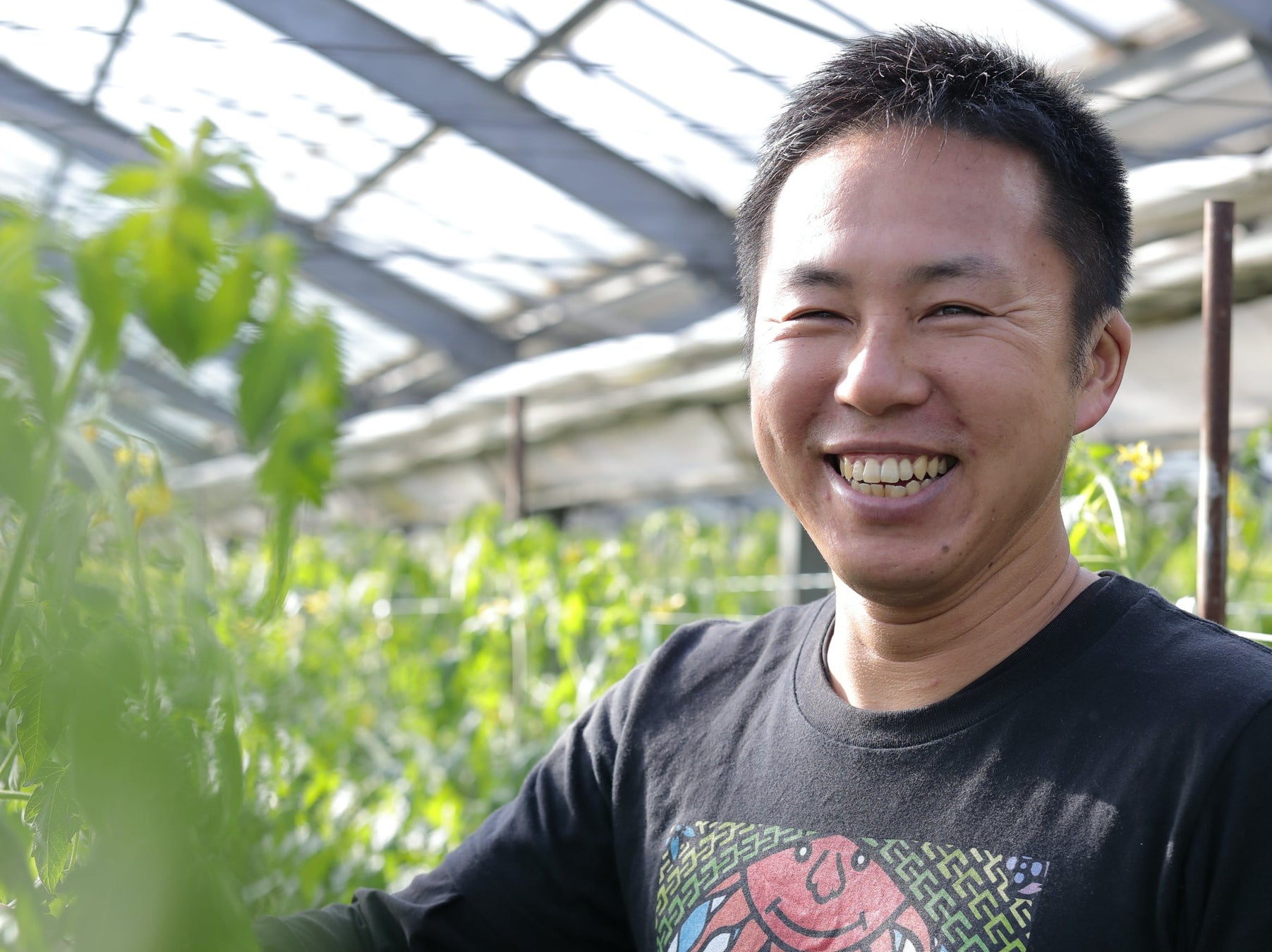 プラム型のフルーツのように甘いトマトです。土光栽培にこだわり、もともと水田だった土地を活用することで、味に甘みとコクが生まれます。通常は糖度を上げるために水を減らすので皮が厚くなりますが、奥松農園では水を十分に与えつつも高い糖度を実現。そのため、甘いのに皮が柔らかいトマトができあがりました。