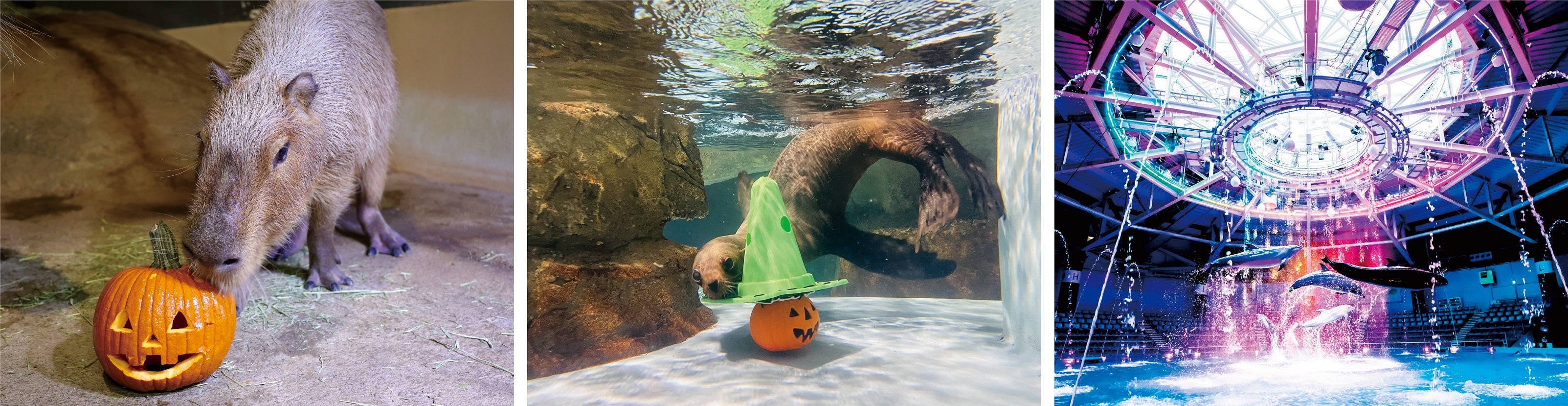 ジャック・オー・ランタンをアイコンにホラーやポップ、キュートなどさまざまなトーンで展開されるハロウィンイベントは幅広い年齢層に受け入れられ、日本でも“秋の風物詩”に挙げられるほどに浸透しています。当館でも、同8日間はその独特な世界観を展示やパフォーマンスに取り入れ、生きものの愛らしい様子とともに“季節感”をお届けしてまいります。