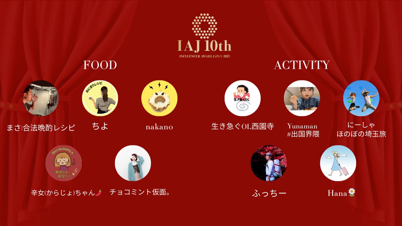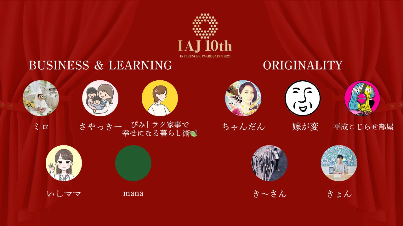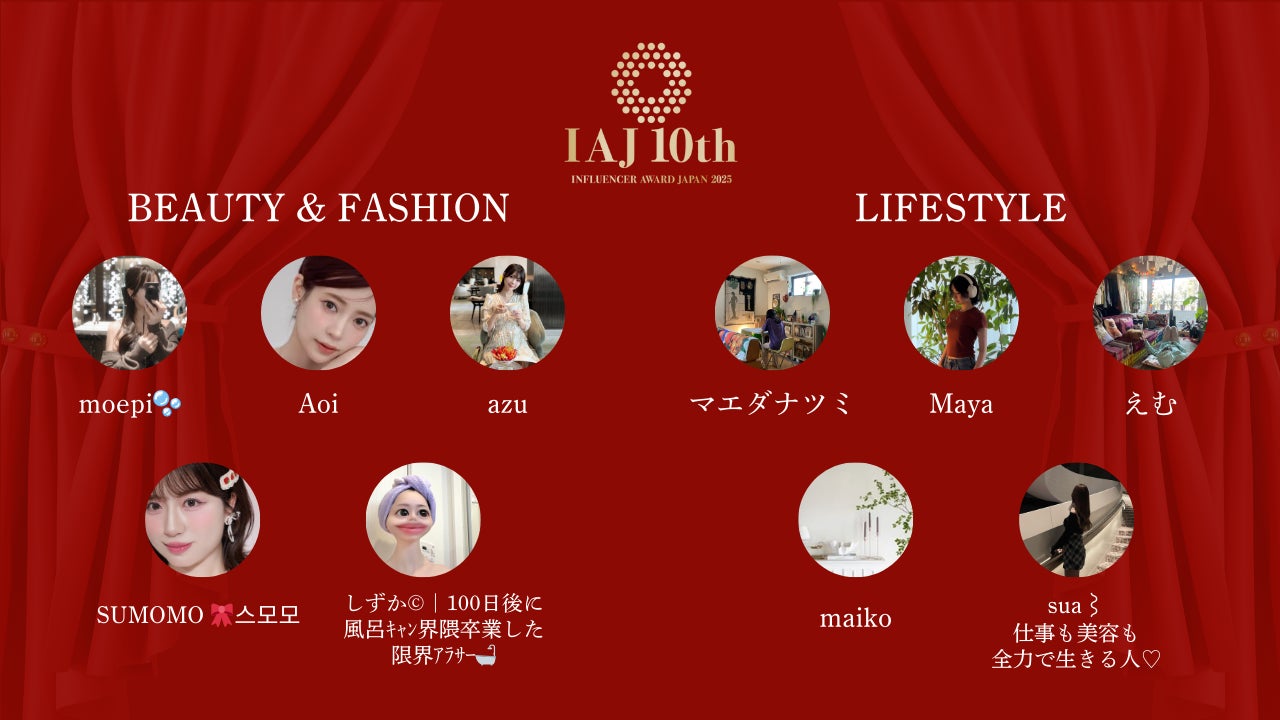 人を基軸としたマーケティング事業を展開するLIDDELL株式会社(本社:東京都港区、代表取締役:福田 晃一、以下リデル)は、2025年に最も活躍したインフルエンサーを決定する『インフルエンサー・アワード・ジャパン 2025(以下、IAJ 10th)』にて、本日ノミネーター 40名を発表いたしました。