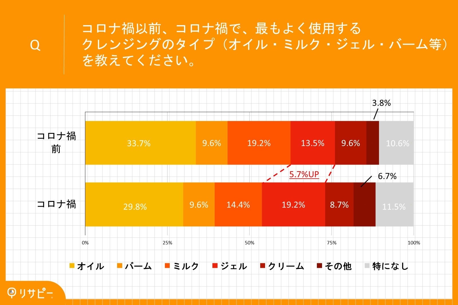 コロナ前とコロナ禍では使用するクレンジングのタイプにも変化が表れていることがわかります。