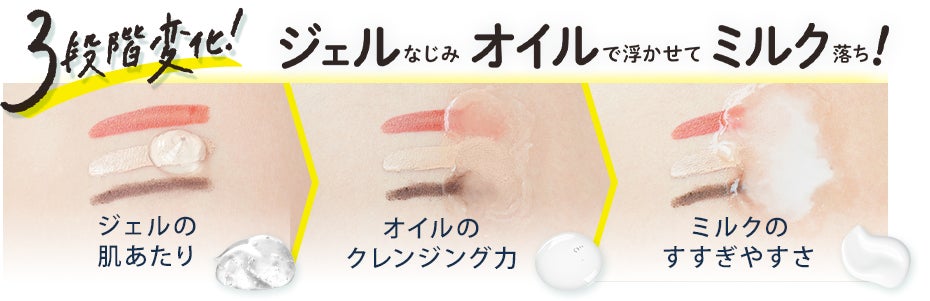 「ジェルの肌あたり」「オイルのクレンジング力」「ミルクのすすぎの速さ」の3つの機能を持ち合わせたSalanaru ピュアクレンジングジェルは、女性がクレンジングに求めること上位の「肌にやさしいこと」「メイク落ちの早さ」を同時に実現します。