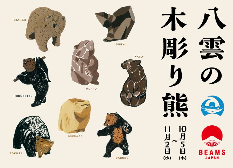 株式会社ビームス(本社:東京都渋谷区、代表取締役社長:設楽洋)が日本の魅力を発信する BEAMSJAPAN(ビームスジャパン)と、北海道八雲町が木彫り熊をモチーフにした新たなグッズを通じて八雲町の魅力を発信するイベント「八雲の木彫り熊」を、2022 年 10 月 5 日(水)から 11 月 2 日(水)まで東京・新宿の店舗「ビームス ジャパン」で開催し、同店と「ビームス 公式オンラインショップ」での販売を開始します。