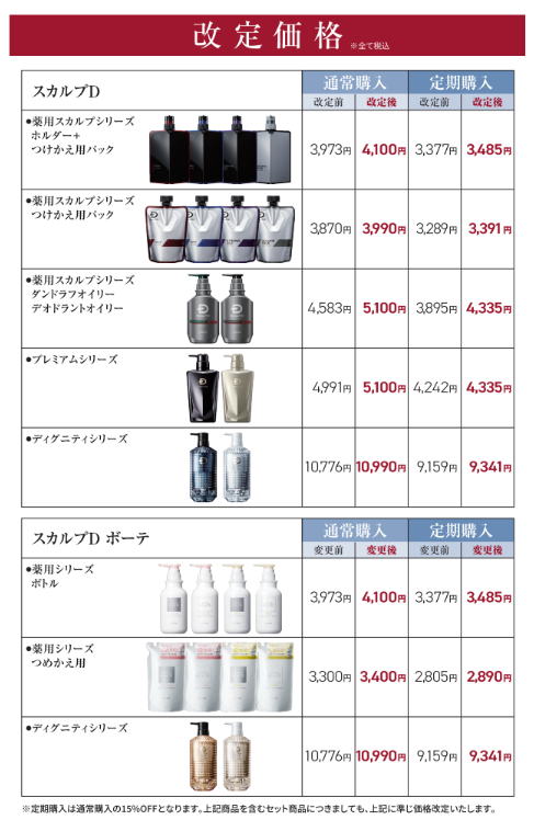 【スカルプD/スカルプD ボーテシリーズ】 価格改定のお知らせ