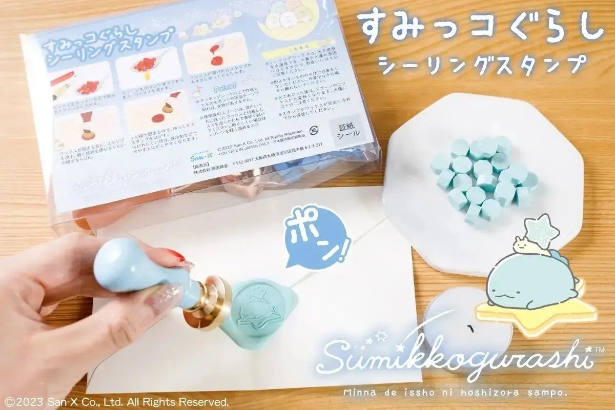 ※封かんやメッセージカード、ラッピングにはもちろん、キーホルダーやアクセサリー作りなど、さまざまなハンドメイドに使えるハンコ「すみっコぐらし シーリングスタンプセット」もAmazon店にて同時に販売を開始いたしました。