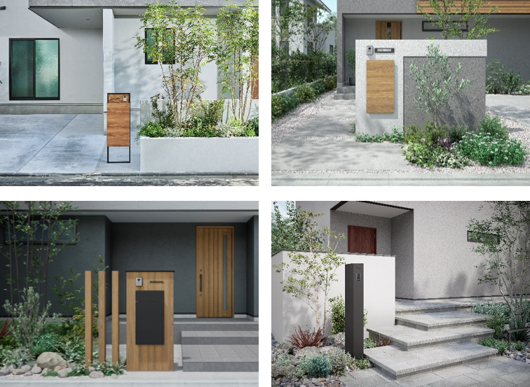 再配達の削減につながる宅配ポストを兼ね備え、住宅のファサードを彩る機能門柱シリーズに、新たに「機能門柱FF」「機能門柱FK」「エクスポストKN・宅配ボックスKN」「機能門柱FT」の4機種をラインアップ。豊富なデザインとカラーバリエーションで、住宅に調和します。