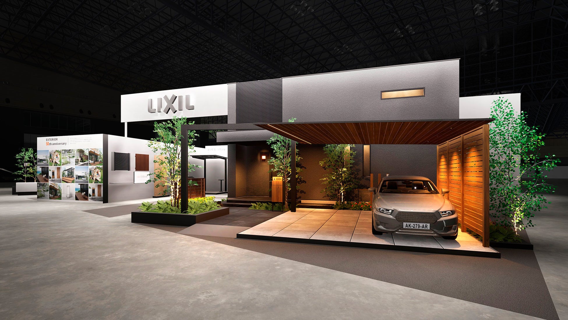 今回の出展のコンセプトは『Design&Quality』となっており、デザインと品質を両立し外構が持つ3つの魅力『見る・使う・暮らす』に沿って、ご紹介しております。今回の展示会では、人気の「カーポートSC」や新商品の「Gスクリーン」を用いたファサードの空間展示や、2024年問題に対応する宅配ポストの「機能門柱シリーズ」、新たに片面木調タイプを追加しフェンスカテゴリーとして人気の「フェンスAB」など、2024年春に発売した新商品をはじめとし、多くのエクステリア商品をご紹介します。