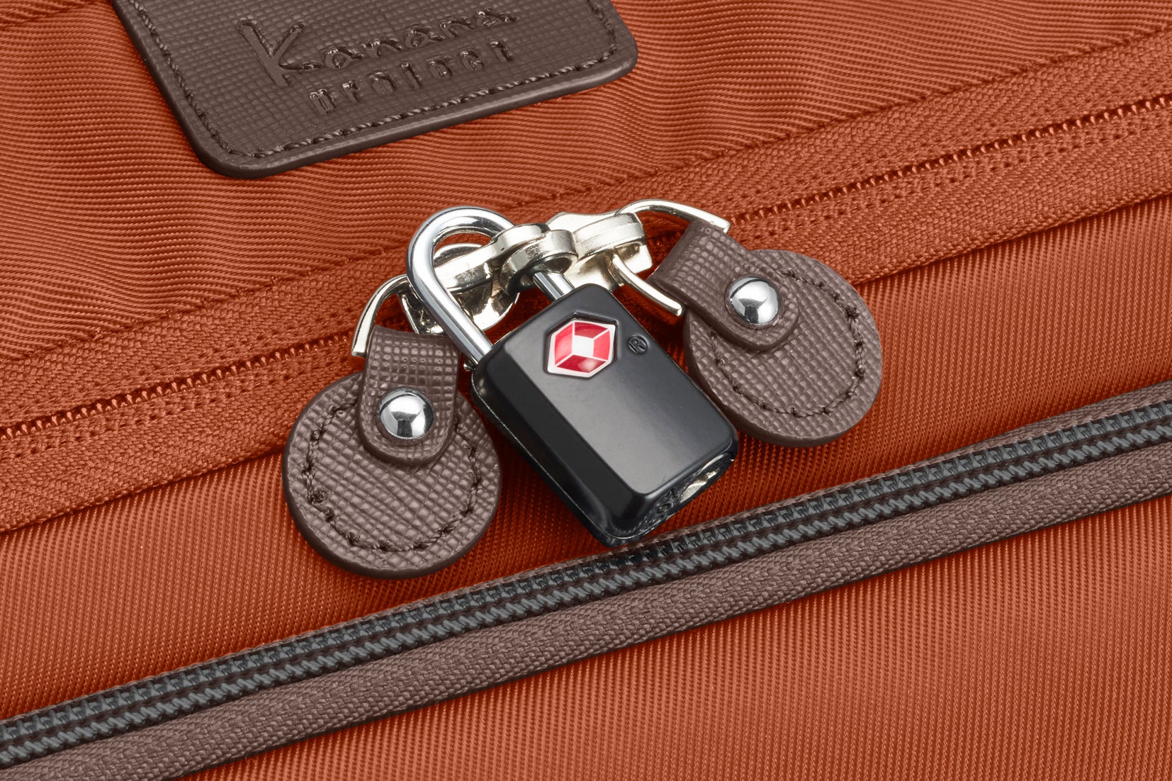 メインファスナーに付属のダイヤル式TSAロックを装着可能。3ケタの数字で開けられるため、鍵は不要です。