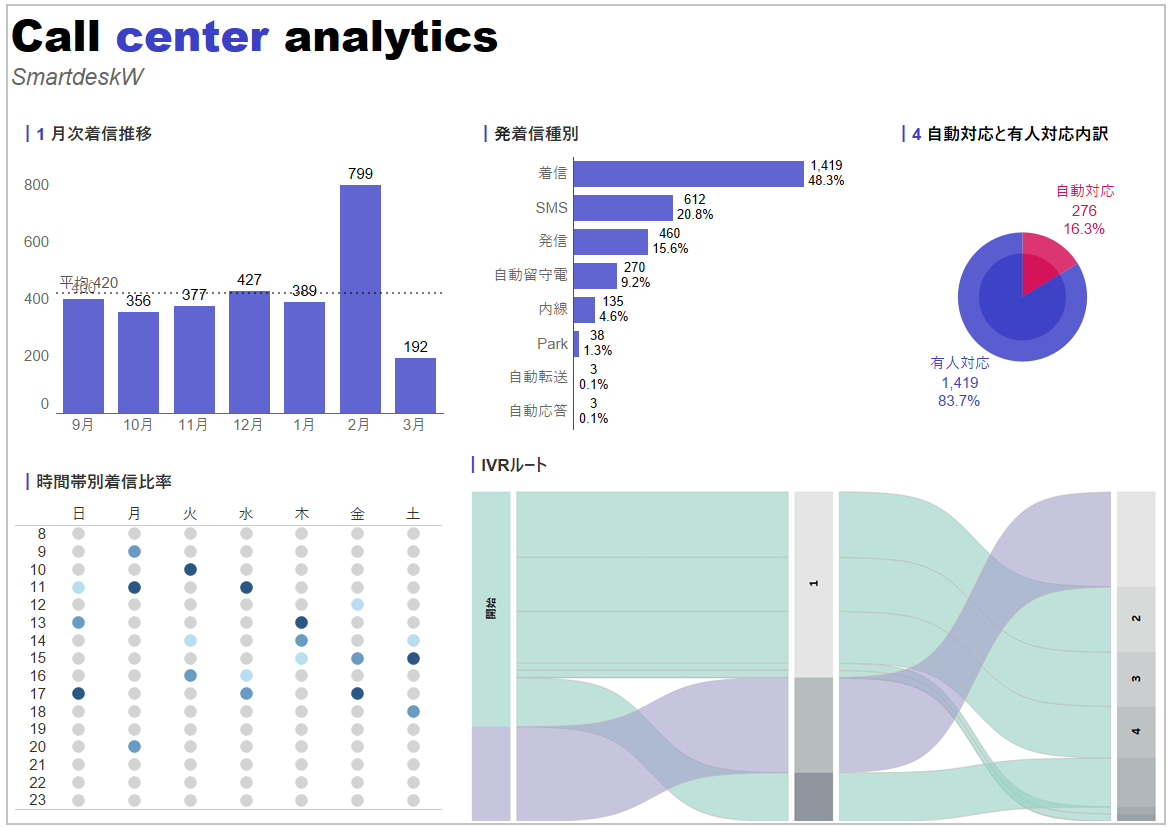 今回新たに追加された機能「見える化レポート」は、受電件数の月ごと・時間帯ごとの推移や自動音声応答(IVR)の利用状況を、視覚的にわかりやすくレポートします。利用状況を把握することで、顧客満足度を向上させるための適切な施策を打つことが可能です。