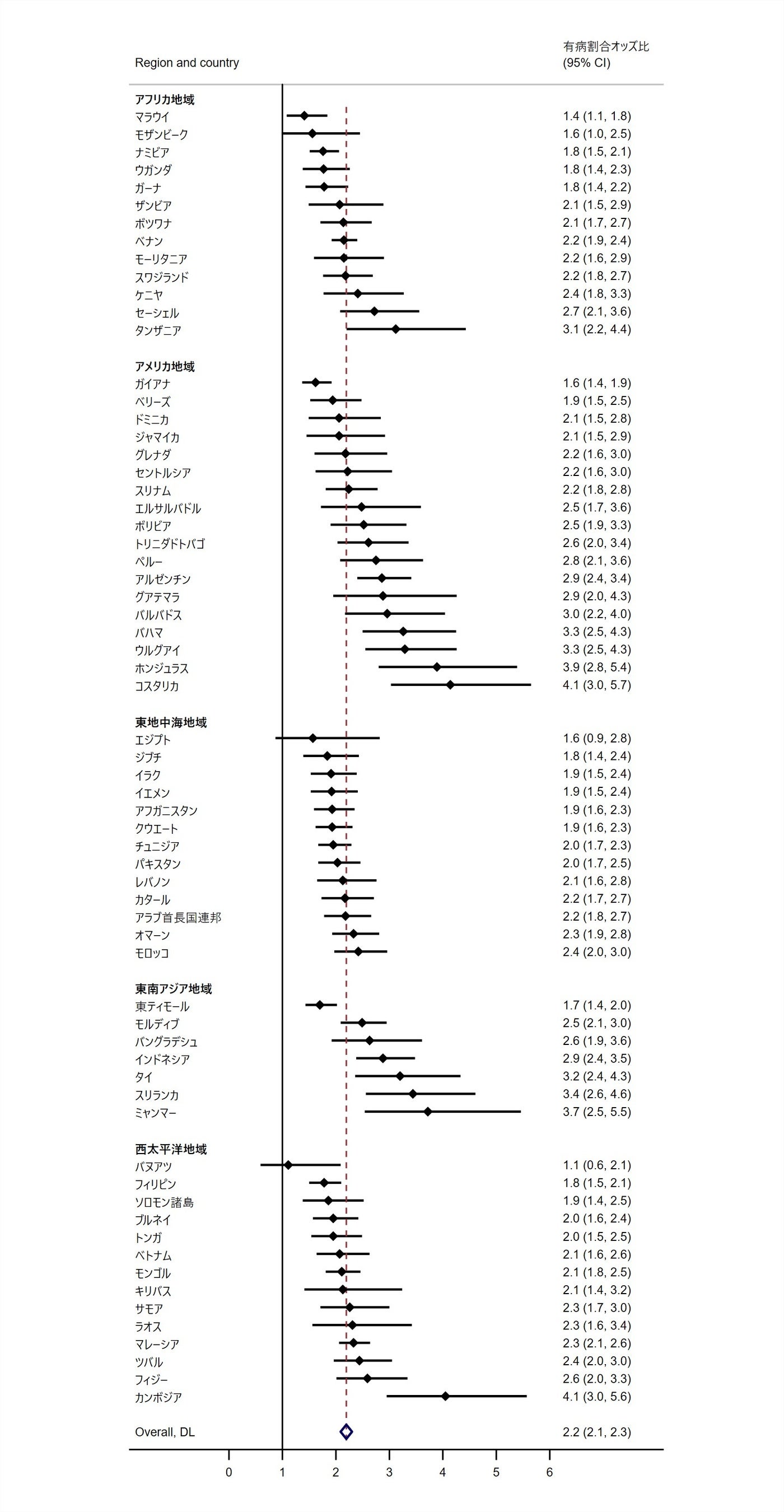 本研究ではWHOが公開している大規模データGlobal School-based Student Health Survey*1(思春期世代13-17歳 248,017人)を使用しました。過去12か月に孤独を感じたことが「しばしばある」「常にある」と回答した場合を「孤独」と定義し、その頻度を国毎に算出しました(図1)。また、関連要因(性別、いじめられた経験、親友の有無)との関連を国毎に算出しました。さらにメタアナリシスを用いてWHO地域別の孤独感の頻度、ならびにその関連要因との関連を算出しました。対象者248,017人のうち、11.7% (95% CI:10.6–12.7)が孤独感を感じていました。孤独感の頻度は特にアフリカ地域(13.1%)や東地中海地域(14.7%)で高値でした(図1)。