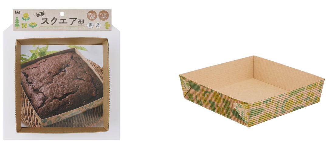 貝印は、軽くて持ち運びがしやすい紙のプレゼント用包装の需要が高いことに着目し、お菓子づくりの時間をより楽しくするアイテムとして、紙製のケーキ型やラッピングを新たに発売しました。