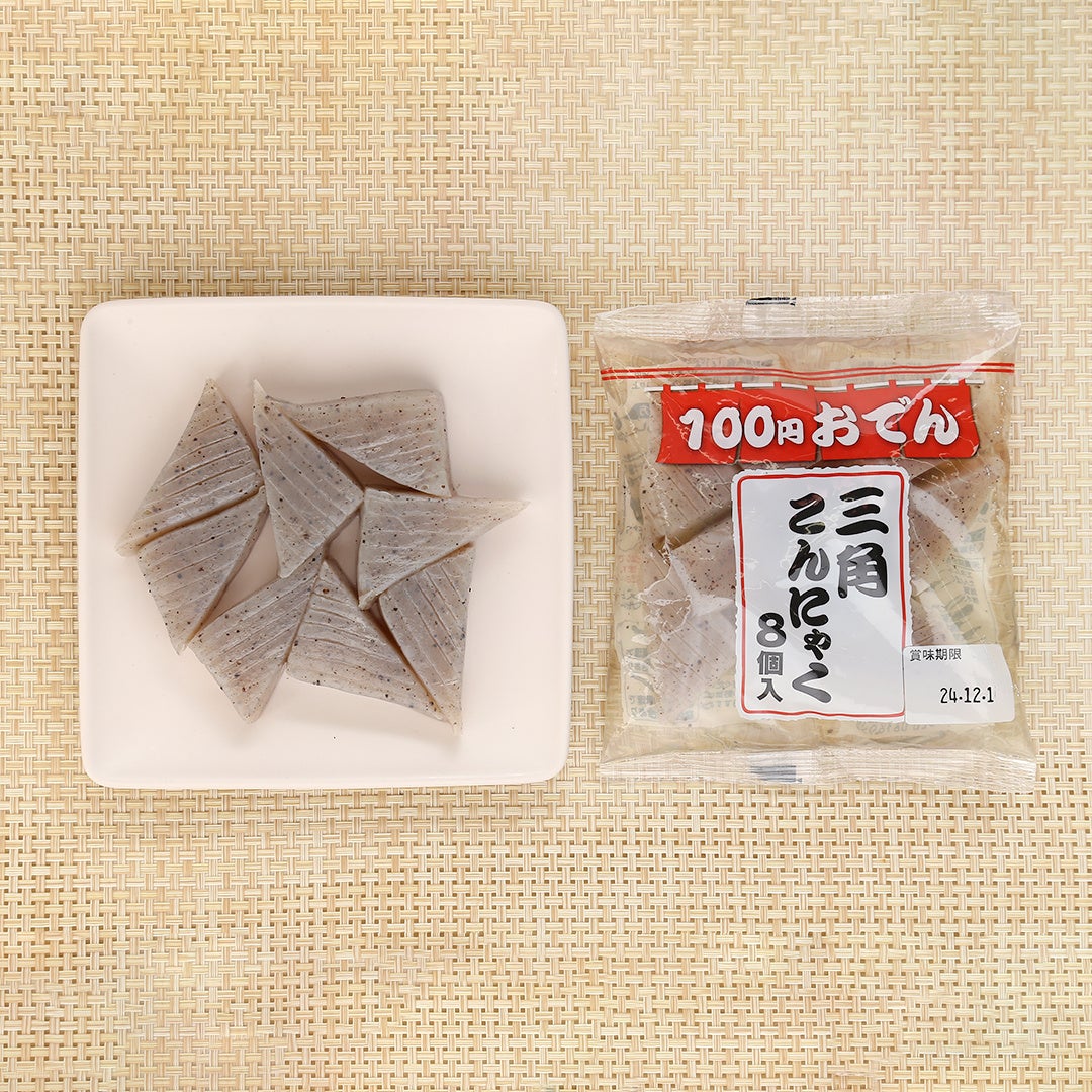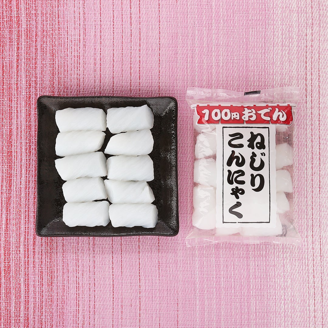 数十本のしらたきをねじりながら結着させ、5センチ前後の長さにカットした棒状のこんにゃくです。結びしらたきの代用として、おでん以外の鍋料理やすき焼きとも相性が良いです。