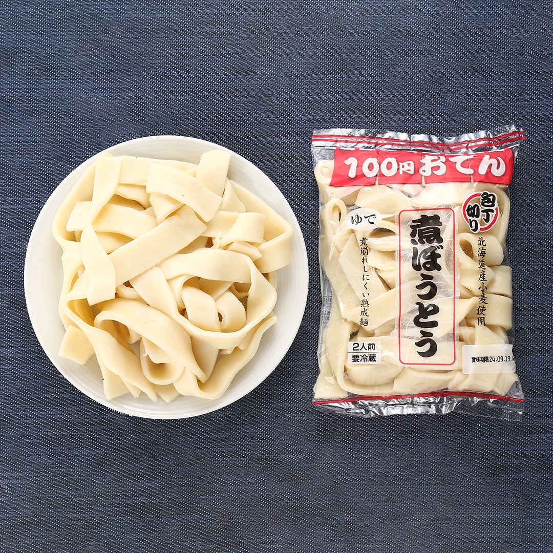 北海道産小麦100%使用の、煮崩れしにくいコシとつるみを追求した煮ぼうとうです。
