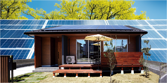 ZEH住宅は、政府が積極的に推進している環境配慮型住宅の取り組みであり、当社も国の方針に基づき、持続可能な社会の実現に向けて、省エネルギーかつ高い環境性能を持つ住宅の提供に取り組んでいます。こうした中、IKIでは平屋のメリットと電気料金値上げや災害停電対策を追求した「IKIのいきいきソーラー」(※4)を始め、100%国産材を使用するなど、脱炭素社会への取り組みを進めてきました。