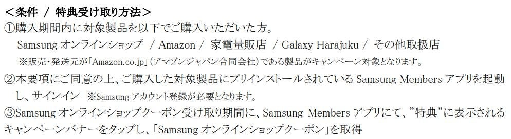 ※キャンペーンに参加する前に( https://shop.samsung.com/jp/termsandconditions )Samsungオンラインショップ利用規約を必ずご確認ください。