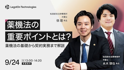 「薬機法の重要ポイントは? 薬機法の基礎から契約実務まで解説」 医薬品や医療機器等は、人の生命や健康を守る重要なものです。その一方で、粗悪な製品が製造販売され使用されてしまうと、人の生命や健康への悪影響が生じうるものであり、薬機法を中心とする法令上の規制が複雑に整備されています。このことから、医薬品や医療機器等の製造販売や広告運用を実施する際には、関連する法令等を慎重に検討することが必要不可欠です。 契約業務においては、薬機法や関連する政省令等の特有のチェックポイントや法改正を踏まえた対応が求められるため、法令等の詳細な調査が必要です。 本セミナーでは、薬機法における法的論点と重要ポイント、契約実務の中での留意点について解説します。また、事業者目線で押さえるべきポイントについても徹底解説します。 |