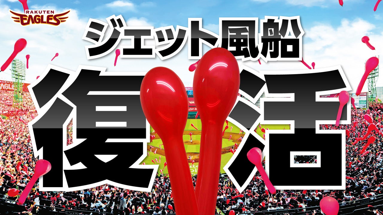 球団創設20周年を記念し、楽天モバイルパーク宮城開催の一軍公式戦主催試合において、試合中のジェット風船の販売・使用を再開!開幕から6試合で当日の観戦チケットをお持ちの先着5,000名様に「専用ポンプ付きジェット風船」をプレゼントいたします。