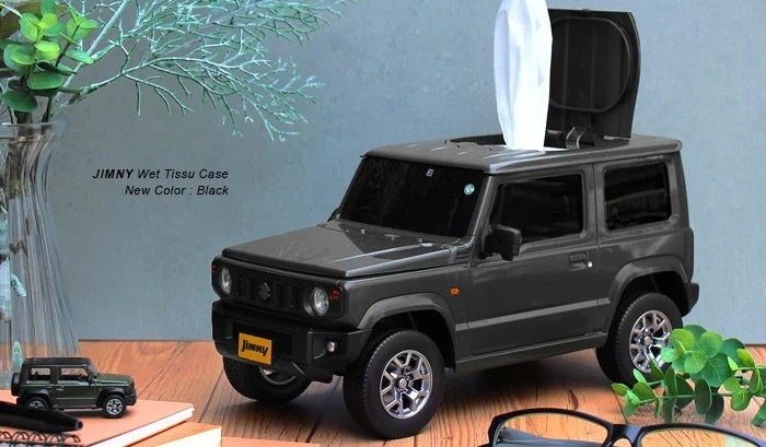 まるでミニカーのような見た目のウェットティッシュケースは、約1/12スケールでJIMNYを再現。とてもリアルなディティールと、タイヤも回るという遊び心でインテリアとしても存在感たっぷりです。