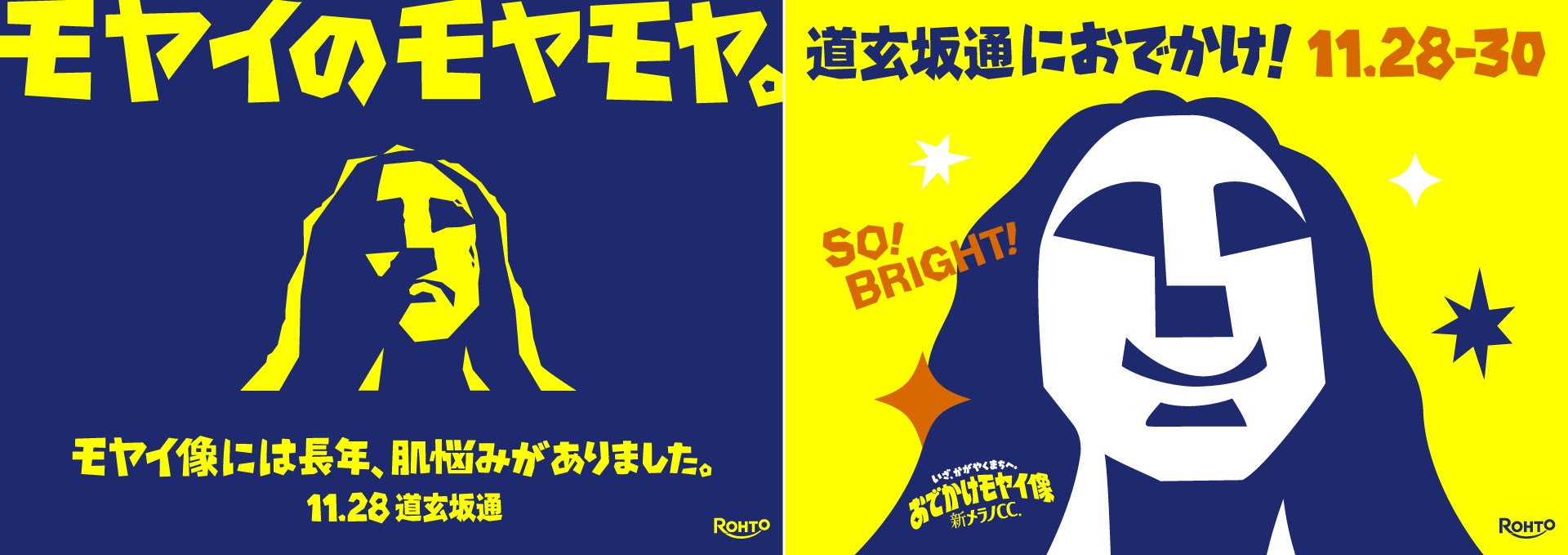 これにあわせて、2025年11月24日(月)〜27日(木)の期間、本家モヤイ像がメラノCC 集中対策マスクプラス(販売名:RロートホワイトCMr【化粧品】)でスキンケアをする仕掛けや、モヤイ像が抱える肌悩みについて渋谷駅にて屋外広告を複数掲出します。