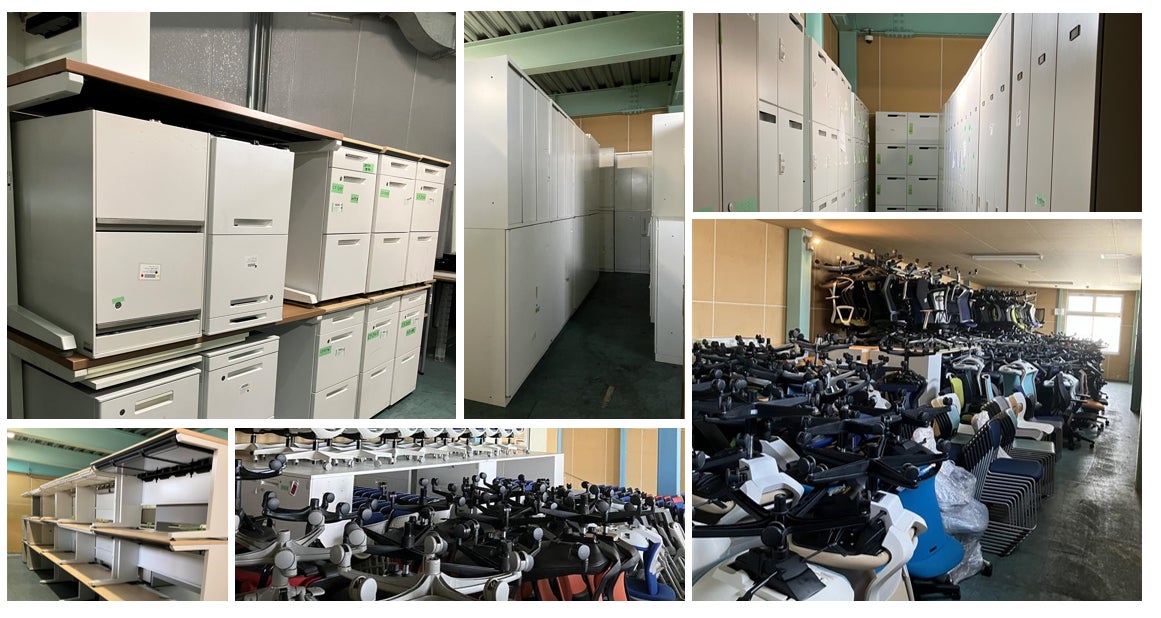 複合機、FAX、ビジネスホン、プリンター、パソコン、シュレッダー、分煙機、事務机、事務椅子、会議用テーブル、会議用椅子、書庫、ロッカー等オフィスに関するOA機器・オフィス家具全て