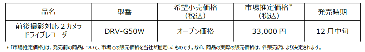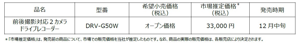 前後撮影対応2カメラドライブレコーダー「DRV-G50W」を発売