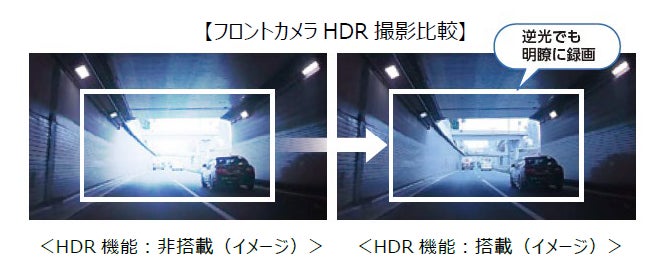 2.前後2カメラにHDR機能を搭載、トンネルの出入り口など明暗差の大きなシーンで安定した録画が可能