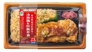 内容:中華料理で人気の油淋鶏と炒飯を組み合わせたお弁当です。清酒、米麹に漬け込んで柔らかく仕上げた鶏唐揚げにねぎやおろし生姜など香味野菜を使用した風味豊かなタレをかけて食べる油淋鶏です。さわやかな酸味と甘み、ねぎやおろし生姜の香味野菜の風味が口に入れた瞬間にふわっと広がります。