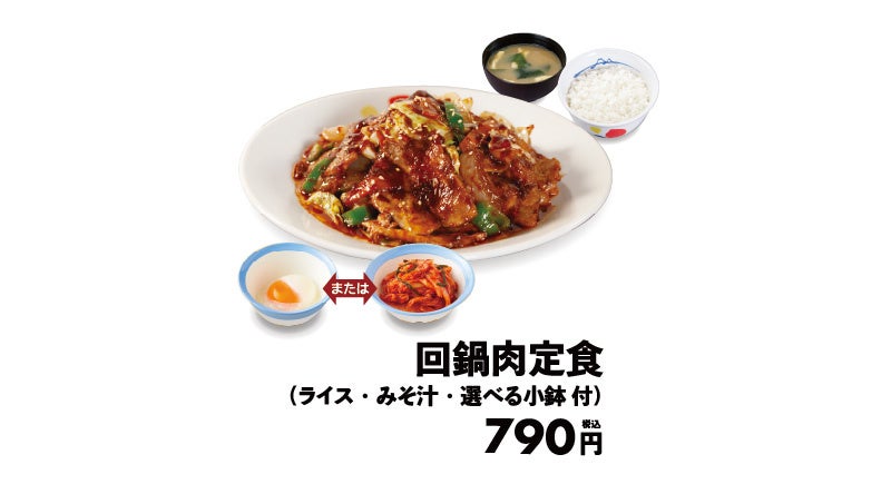 商品名 回鍋肉定食 選べる小鉢付き 790円 ※お持ち帰りいただけます。お持ち帰りにみそ汁は付きません。 お持ち帰りの場合、みそ汁は別途60円でお求めいただけます。 ※税込み価格です。 ※選べる小鉢は半熟玉子orキムチ(回鍋肉単品は選べる小鉢は付きません) ※株主優待券は上記全てのメニューにご使用いただけます。 発売日 2023年7月25日(火)午前10時 ~ 対象店舗 一部店舗を除く全国の松屋 |