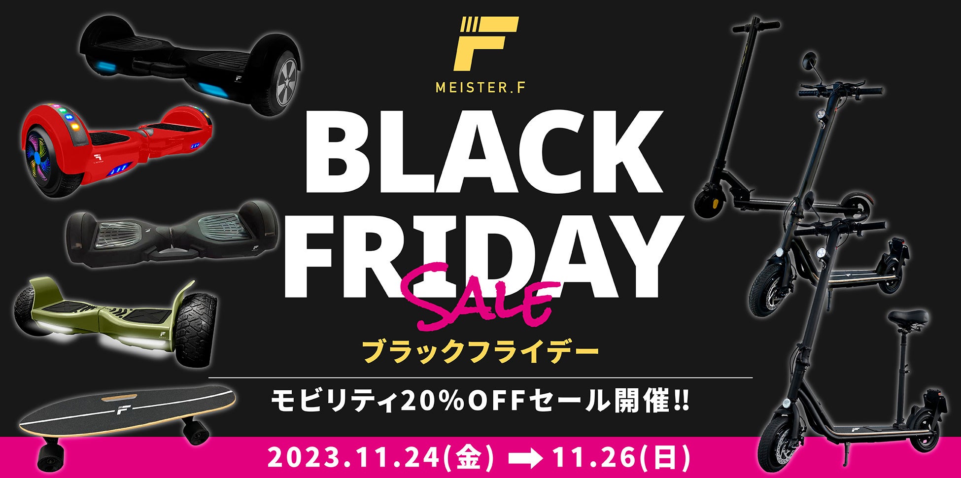 16歳以上免許不要で公道走行可能な特定小型区分電動キックボードを好評販売中!BLACK FRIDAY SALE第2弾を「MEISTER.F」イオンモール沖縄ライカム店が11月24日(金)から開催決定