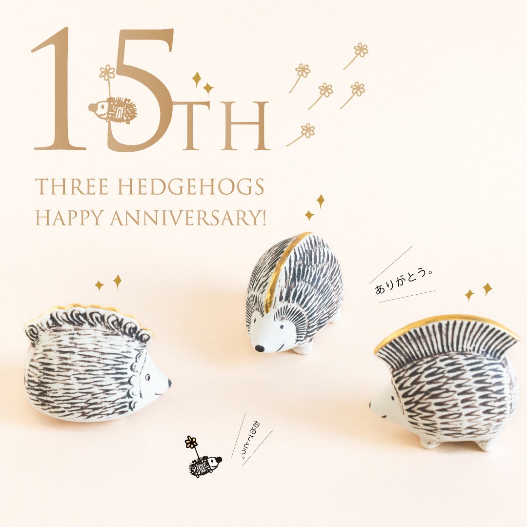 はりねずみ3兄弟が生まれて、2025年で15年がたちました。その記念に、かつて一度だけ作られた金をまとったはりねずみを復刻しました。おめでとうございます。ありがとうございます。