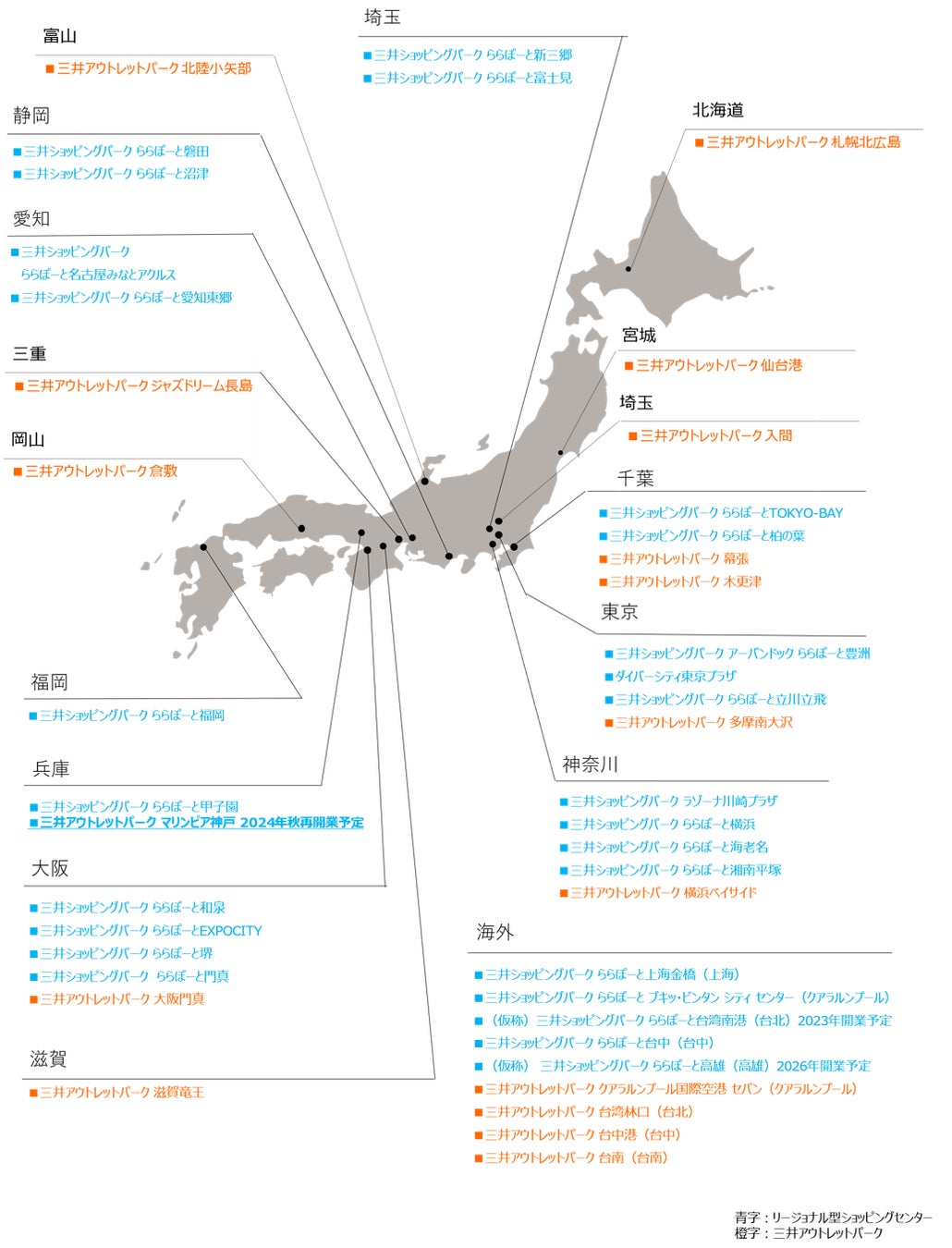<添付資料③> 三井不動産のリージョナル型ショッピングセンター・アウトレットモール(2023年8月時点)