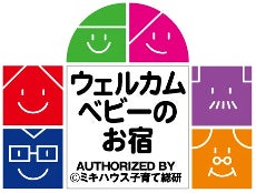 ミキハウス子育て総研株式会社が、赤ちゃん・子どもがいる子育てファミリーにとって安心して宿泊できる施設を『ウェルカムベビーのお宿』として認定しています。全100項目中70項目以上充たせば認定となり、当施設では86項目以上を満たして認定となりました。